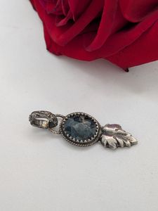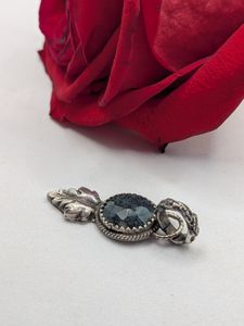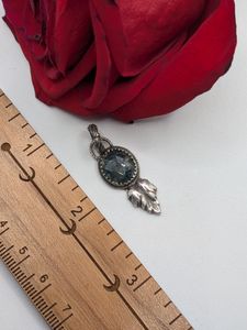 Delicate moss agate pendant featuring a playful leaf. Made fully from sterling silver. No chain