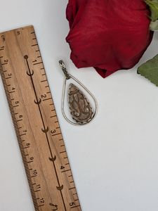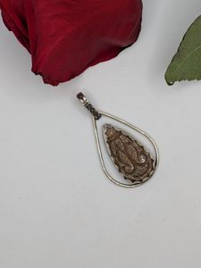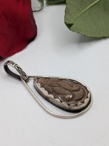 Product details for Carved Peach Sunstone Pendant .
